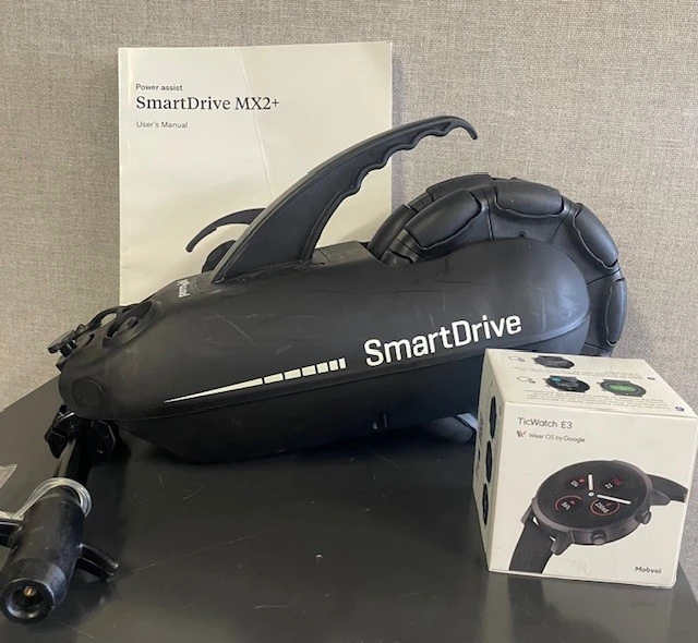 SmartDrive MX2+ Power Assist weighs only 12.5 lbs, has a 12-mile driving range, and can travel up to 5.5 mph.